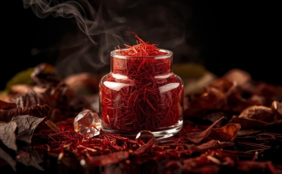 Possesses a distinctive spicy-herbal character with woody, phenolic, and camphoreous facets that capture the essence of precious saffron spice.